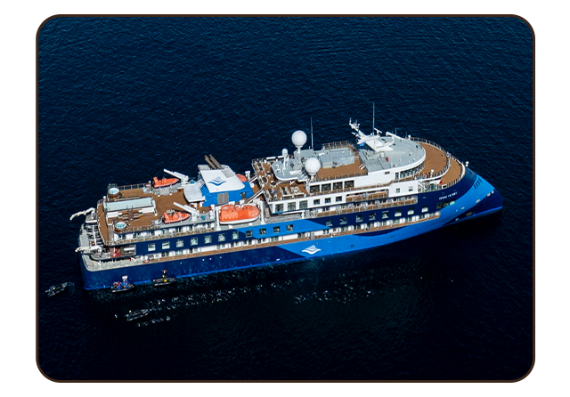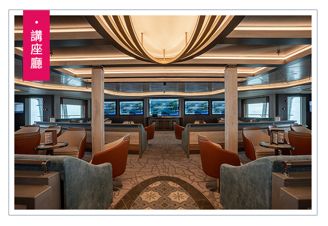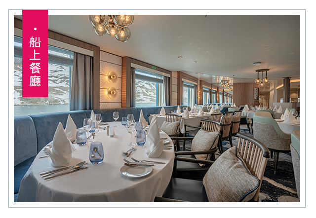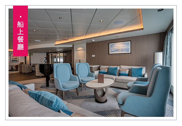 Ocean Albatros 是一艘現代化精緻的 探險船,內部裝潢為斯堪地納維亞風格, 強調簡約與功能性,使用自然材料如木材 石材,色調以柔和海洋色系為主(淺藍、 白色及沙灘色)營造舒適放鬆氛圍。船上 全面化設施提供乘客舒適而難忘的體驗。