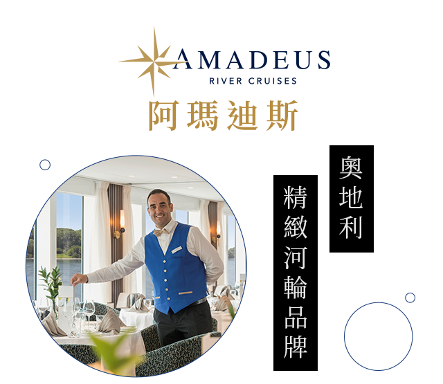 品味歐洲水道的極致巡遊-Amadeus為來自奧地利精緻優雅的河輪品牌,一個擁有超過40年Lüftner家族傳承的品牌,專注於歐洲河輪旅遊,以舒適、精緻及文化體驗聞名。