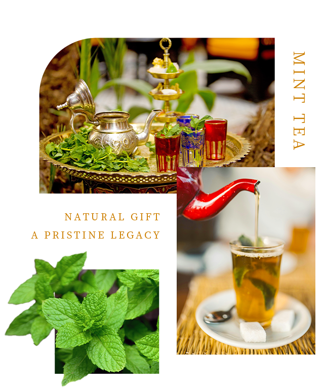 摩洛哥人從19世紀開始養成飲茶的習慣,這其中也考量了健康因素。他們將水 、綠茶和新鮮薄荷葉共同熬煮成著名的薄荷茶。