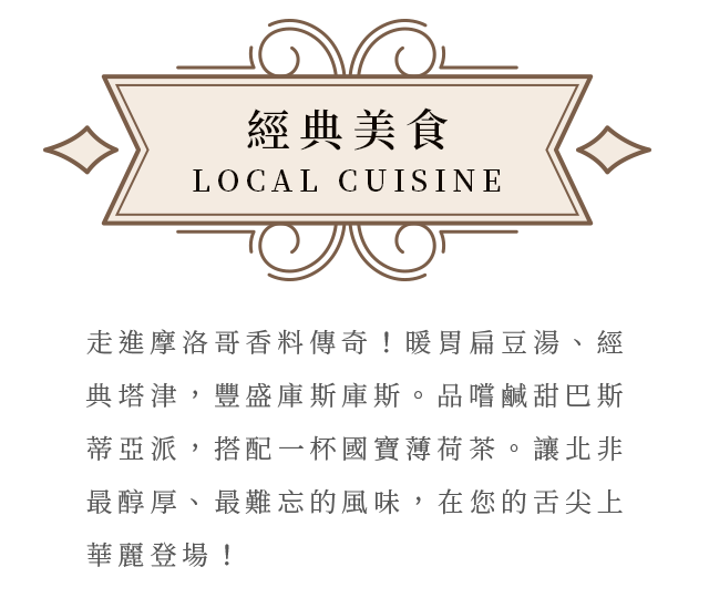 摩洛哥節慶時的點心,更是一道團圓菜,結合鹹甜兩種口味的名餚,美味的讓 人難以忘懷。