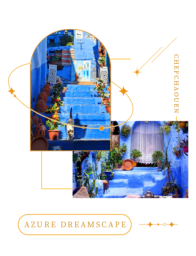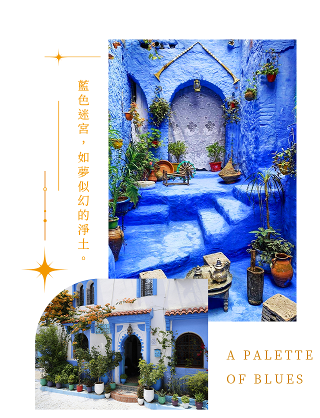 坐落在里夫山脈間的契夫蕭安,當地居民遵循古老傳統,將房屋染上天空般的 藍並灑滿整座山城,最終凝結成這座如夢似幻、遺世獨立的藍色迷宮。