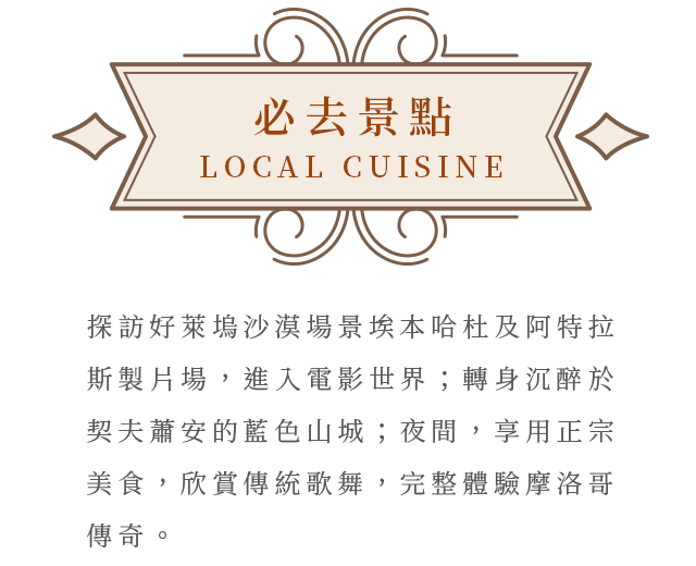 在世界遺產地,品味摩式下午茶,俯瞰廣場上吞火人、玩蛇人等江湖賣藝,這 場下午茶,將是最難忘的文化盛宴。