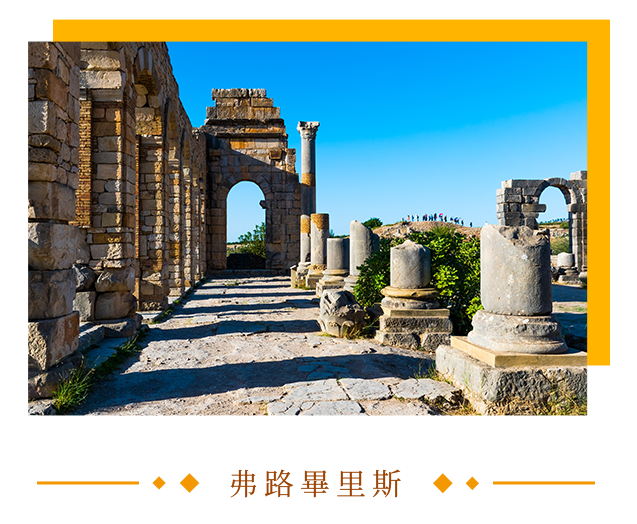 位於摩洛哥梅克內斯附近,是北非保存最完整的古羅馬遺址之一,遺址坐落在廣闊 平原上,以精美的馬賽克地板、雄偉拱門與神廟遺構聞名。