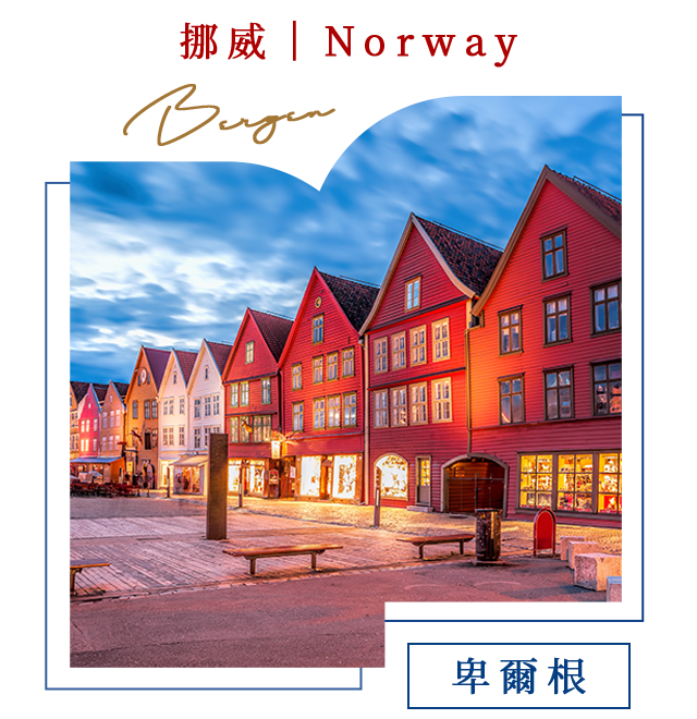 卑爾根布里根區為世界遺產中世紀木屋街區,展現港口歷史。漁貨市集感受港口生活與新鮮海產,佛洛伊恩山可俯瞰市區與峽灣,體驗城市與自然慢遊之美。