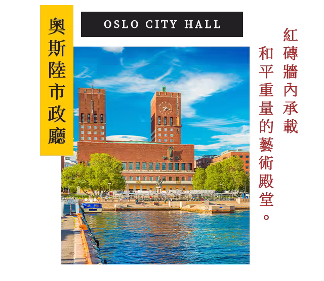 市政廳位於市中心,每年十二月舉行諾貝爾和平獎頒獎典禮。建築內部以壁畫與藝術品裝飾,呈現挪威歷史與文化故事。這裡象徵民主與和平,也是遊客必訪的地標之一。站在廣場上,能感受到這座城市的莊重與國際化氛圍。