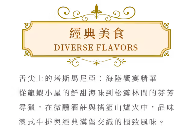 斟上一杯陽光與泥土的詩,在葡萄藤蔓下 與時光對飲。走進莊園,讓味蕾在酒間慢 舞,這不只是品酒,而是在微醺的琥珀色 光影裡,遇見塔斯馬尼亞的靈魂。