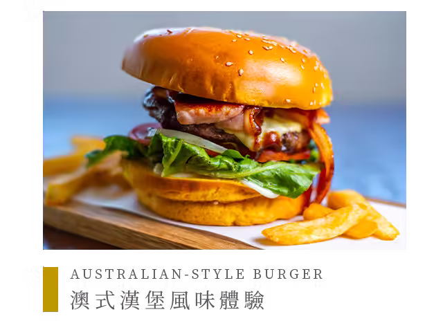重新定義經典漢堡的層次,選用澳洲在地 草飼牛肉,大口咬下,讓豐沛的肉汁與鮮 甜蔬果在舌尖碰撞,感受那種隨興卻不失 精緻的澳式午後。