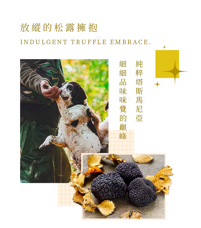 跟隨獵犬在塔斯馬尼亞紅土中,探尋與法 、義齊名的珍稀黑松露;親手挖掘這份大 地的饋贈,讓濃郁幽香在起司三明治間優 雅綻放。