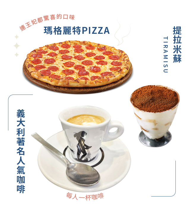 .炸海鮮拼盤+義大利墨魚麵+提拉米蘇冰淇淋