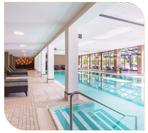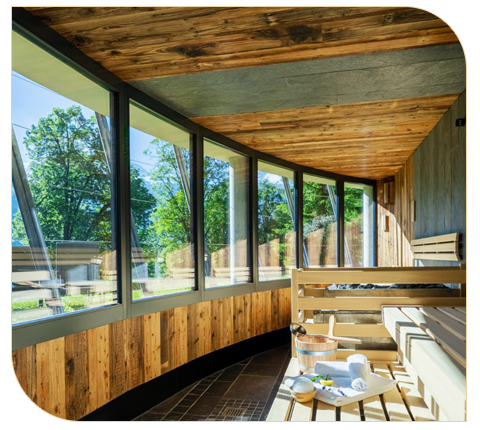 佔地約 2,000 平方米,結合室內(28 °C)與室外(34 °C)泳池,設有多種桑拿(芬蘭、鹽蒸、石油蒸氣等),另外還有專業按摩(芳香療法、水療等)、健身房、瑜珈、自行車出租、雪橇與滑雪裝備等。