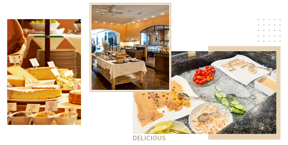 在清晨的山光水色中,Lenkerhof Gourmet Spa Resort 為賓客準備了一場滋養身心的早餐盛宴。早餐於明亮寬敞、視野極佳的餐廳內供應,賓客可一邊眺望群山與森林,一邊享用來自瑞士本地與國際的多樣化早點。