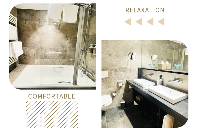 每間客房與套房的浴室在設計上都體現出 Lenkerhof 對「舒適」、「質感」與「放鬆」的極致追求,融合阿爾卑斯自然風格與現代奢華元素,打造如私人 SPA 般的沐浴體驗。