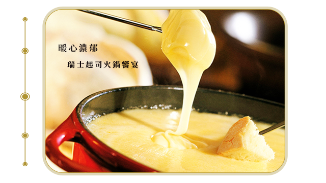 瑞士起司火鍋(Fondue) 是瑞士的傳統美食,由多種融化的起司混合白酒加熱而成,食用時將麵包、馬鈴薯或蔬菜等食材沾取起司享用。