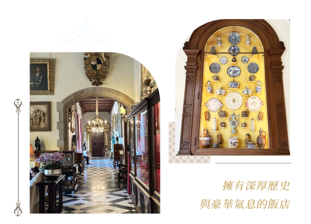 建築風格融合英式都鐸與德國新文藝復興風格,內部仍保留許多原始古董、畫作與精緻家具 。