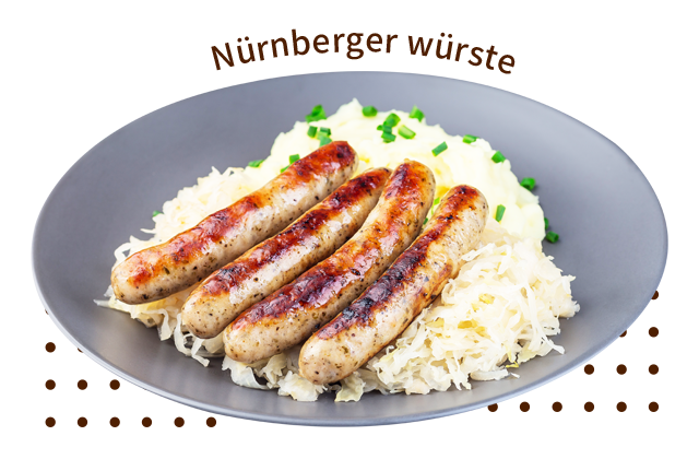 體型嬌小、風味濃郁,以豬肉混合香料製成,帶有淡淡馬郁蘭香氣。經木炭火烤至外皮金黃微脆,肉汁鎖在細緻的腸衣內。經典吃法是一次上六條(Sechs im Weckla),搭配酸菜或芥末,咬下一口便能感受到巴伐利亞的地道風味。