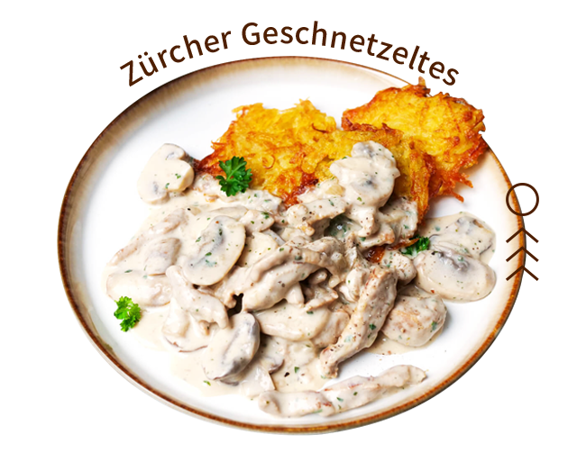 瑞士蘇黎世的經典料理,由嫩滑小牛肉切片快炒,再以白酒與奶油醬汁慢燉,口感細緻濃郁。通常搭配黃油炒馬鈴薯丁(Rösti),每一口都能感受到醬汁的香濃與肉質的鮮嫩,是冬日暖心的地道瑞士美食。