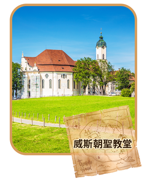 於1983年被聯合國教科文組織確定爲世界文化遺産。位於德國巴伐利亞草原上的威斯朝聖教堂,是洛可可藝術的巔峰之作,也是聯合國教科文組織世界文化遺產。18 世紀時,因「哭泣的基督像」奇蹟而成為朝聖地。外觀樸素,內部卻金碧輝煌:白色雕飾、金色線條與柔和壁畫交織出夢幻空間