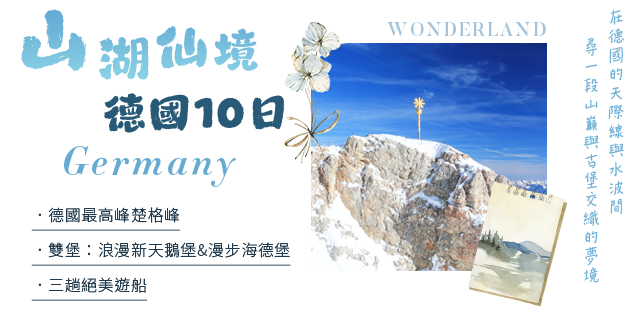 從博登湖畔起,一條穿越阿爾卑斯山童話般的登頂之路,沿途景觀變幻 萬千、色彩濃鬱的景色如新天鵝堡、楚格峰。