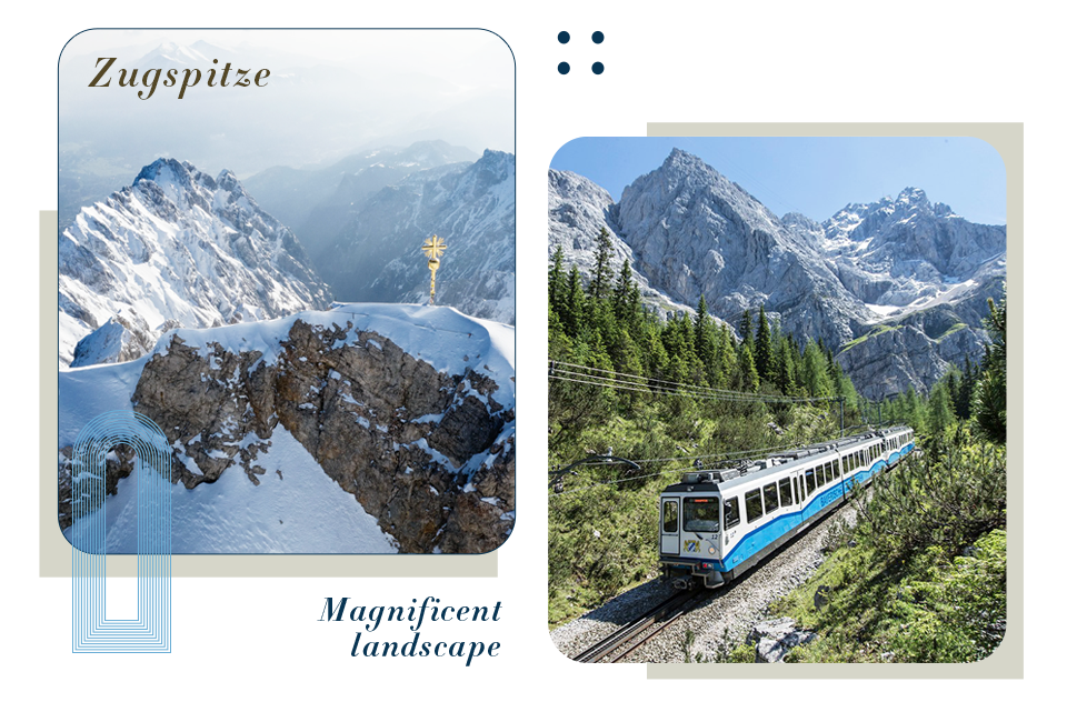 德國著名的阿爾卑斯滑雪勝地加米許。我們特別安排從山下的嘉蜜熙搭乘齒軌火車登上德國境內阿爾卑斯最高的山峰-楚格峰,此地高2962公尺是韋特施泰因山脈最東邊的山峰,您可遠眺並欣賞到極為迷人橫貫歐洲中部之阿爾卑斯山群峰雄姿,親身目睹大自然所創造的奇麗景觀。