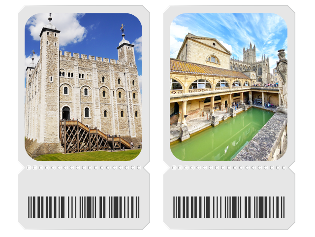 巴斯浴池、古巨石群、溫莎城堡、倫敦眼、倫敦塔、大英博物館