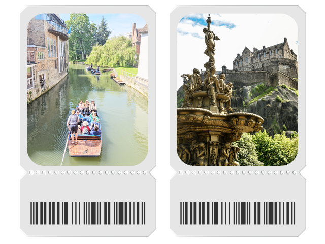 劍橋撐篙船、國王學院、英國國鐵、愛丁堡城堡
