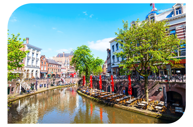 舊運河的河道採取階梯式設計、連綿不絕的教堂鐘聲,夾雜著街道清脆的自行車鈴聲。