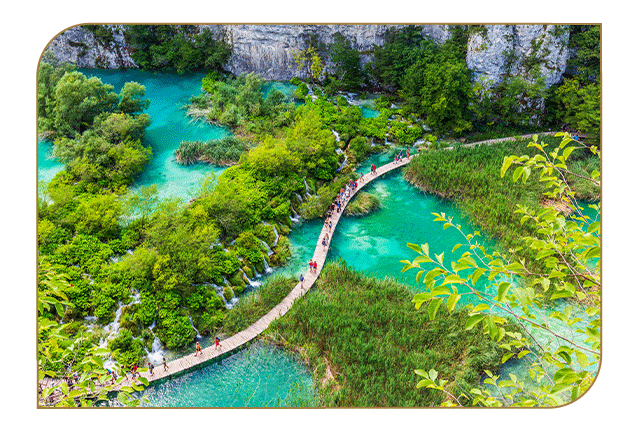 有歐洲九寨溝美譽及世界自然遺產的普萊維斯國家公園-南斯拉夫最綺麗的國家公園,由數座大小湖泊及無數瀑布組成,又稱為十六湖國家公園。它是由水和石灰岩層變化而形成特殊的石灰華地形,且湖水會因含有各種不同礦物質成分的變化而顯得瑰麗異常。