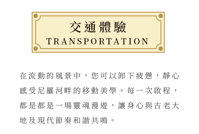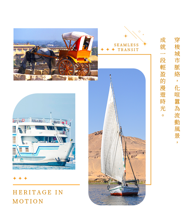從河輪上的悠然遠眺、風帆船隨波的輕微搖曳,到馬車規律的噠噠蹄聲,這場結合 水陸的優雅漫遊,讓思緒安放於時光的凝結與流動之中,感受歲月的靜好。