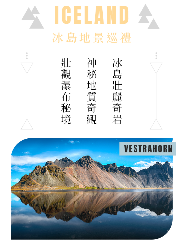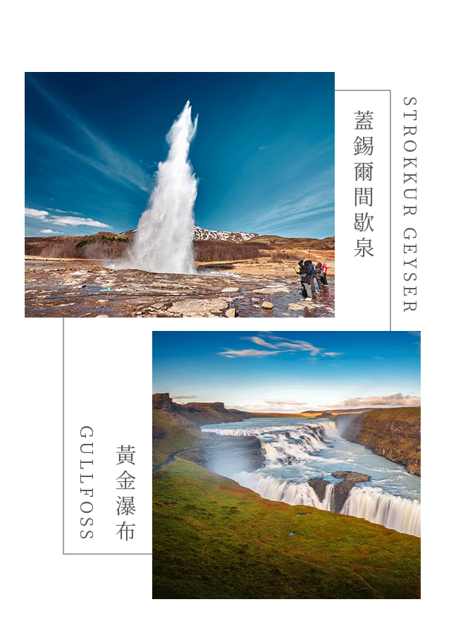 地熱區蒸氣氳,噴泉此起彼落;冰川融水 奔騰落入峽谷,聲勢磅礡,串連冰島的地 質奇觀與歷史文化核心。