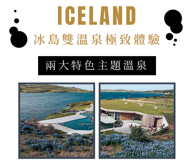 特別選擇 Skylagoon 與 VOK Bath 兩大經典溫泉,遠離擁擠人潮,讓您在純淨環境中泡湯。Skylagoon 結合火山景觀與現代設計,水質溫潤清澈;VOK Bath 坐落於東部秘境,融合冰河湖與地熱泉水,帶來奢華且難忘的冰島泡湯體驗。