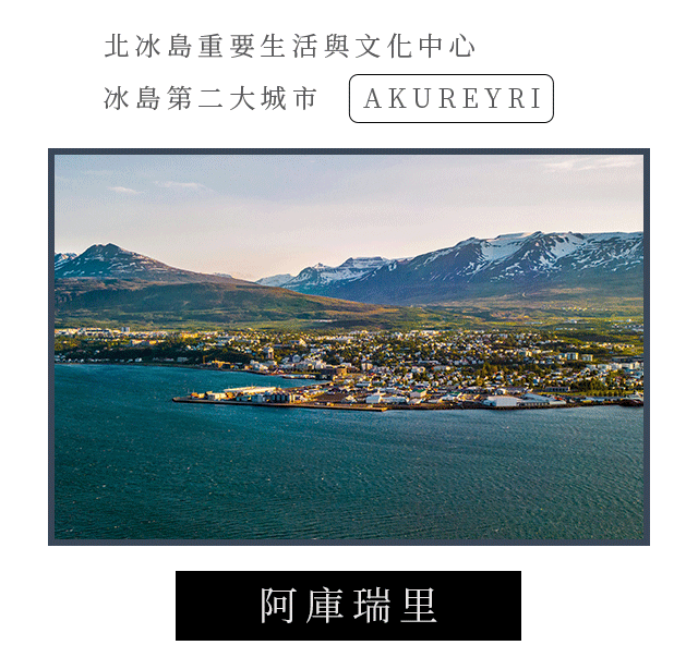 阿庫瑞里Akureyri位於北部艾亞峽灣 內,由於受峽灣地形庇護,氣候相對溫和, 周邊則環繞火山地貌。