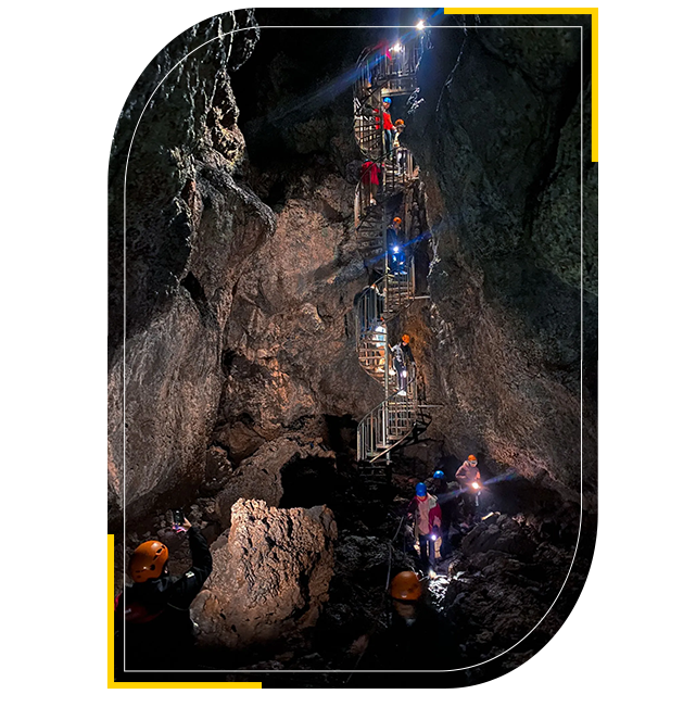 探秘具有8000年地質歷史的瓦汀舍利爾熔岩洞穴,順著曾流淌過滾熱岩漿的熔岩隧道縱深遊覽200米,欣賞洞中神奇的岩石構造與形狀奇異的洞壁。