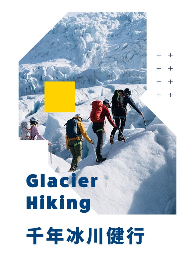 從冰河的前緣展開千年冰川健行,在冰河上跟隨嚮導的腳步近距離感受其變幻莫測的地形,將會是您最難忘的體驗!