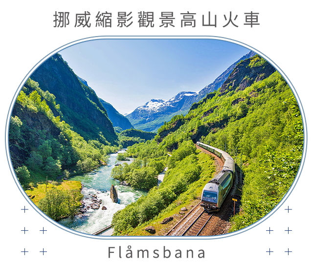 世界最陡的標準軌距鐵路之一。列車從海拔 866 公尺至僅 2 公尺的弗拉姆,短短一小時,飽覽峽灣山岳、壯觀的飛濂瀑布與幽谷溪流。
