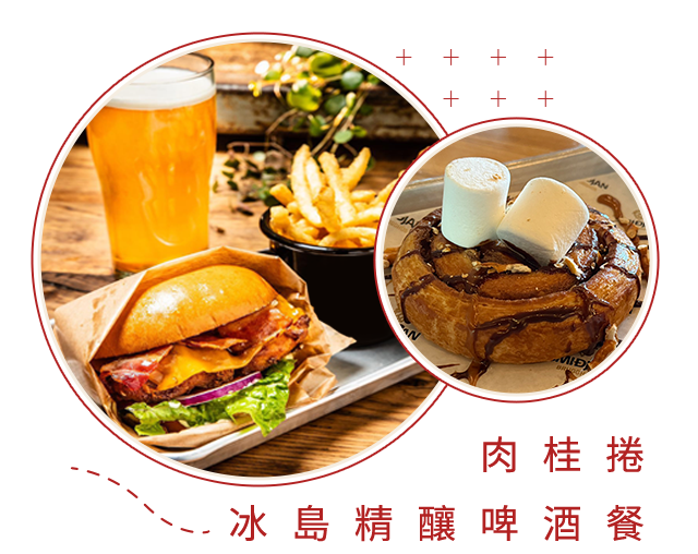 獨特的冰島主題風味,品嚐到當地精釀啤酒,並搭配冰島的傳統甜點肉桂捲,香氣四溢,是當地人餐後或下午茶時的必備小點心。