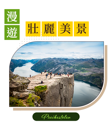 聖壇岩又稱布道台,位於呂瑟峽灣上方,海拔約604公尺。刀削般的巨大岩台幾乎垂直懸空,寬闊的巨石平臺,站在邊緣俯瞰峽灣,視野開闊壯麗。登山路線雖具挑戰性,但沿途風光秀美,有瀑布、森林和岩壁。聖壇岩被 CNN 評為全球最壯麗的自然美景之一。