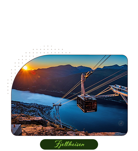 羅姆達爾纜車從翁達爾斯內斯市中心出發,直達高聳山頂。乘坐纜車可飽覽群峰環繞的羅姆達爾山谷,河流蜿蜒其中,景致壯闊。登頂後,峽灣地形盡收眼底,俯瞰到山谷的壯麗景色,山脈環繞,河流穿梭其間。