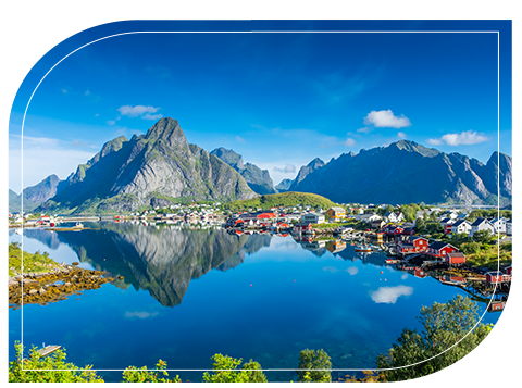 羅弗敦群島深藏的窄峽灣,以垂直入海的峭壁與巨魔傳說聞名。峽灣曾是漁民藏船避風之處,迄今仍保留北極漁村風貌。夏季搭乘遊船巡航,兩岸綠意盎然,海鷗盤旋,峽灣靜謐迷人。陽光灑落在深藍海面上,映照出峽灣壯麗景色與傳說的奇幻氛圍。