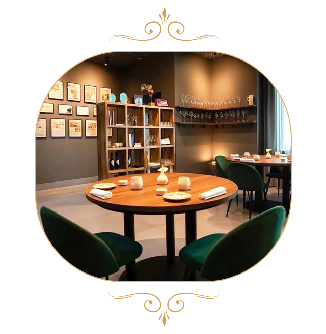 溫馨古典的餐廳擺設出一道道史詩般的心動美饌,感官在拂曉的清新森林裡蓄勢待發,開啟一場色香味挑逗的心動饗宴。