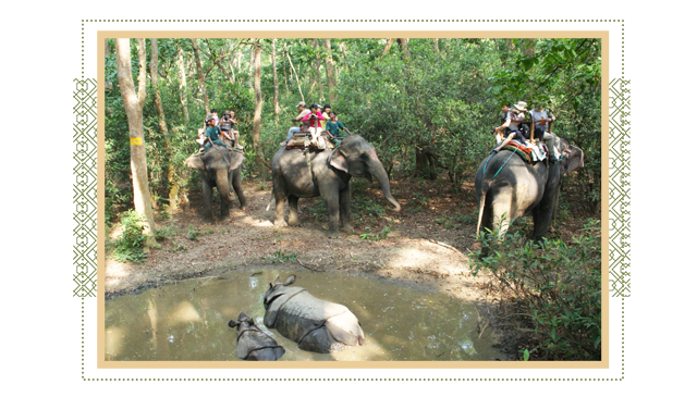 奇旺國家公園UNESCO 安排騎乘大象尋找自然的呼喚,體驗伊甸園的自然風情,目前公園內,大約有50多 種的哺乳類動物,超過800種的鳥類,此外還有許多瀕臨絕種的野生動物,包括獨角犀牛、 孟加拉老虎等。欣賞奇旺當地原住民塔魯族的舞蹈表演