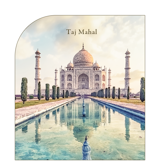 譽為世界七大奇觀之ㄧ,被印度詩人泰戈爾形容是「在永恆臉 中的淚珠」,白色大理石的陵墓每天隨著不同的光線而改變顏色。不論就建築的角度來看, 還是背後那段感人的愛情故事,都讓泰姬瑪哈陵成為遊客到印度必訪的景點。
