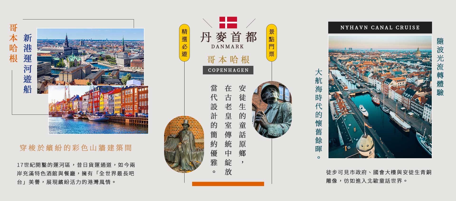 乘坐遊船穿梭城市運河,欣賞彩色建築、古橋、皇家堡壘與美人魚雕像,從水路感受哥本哈根的獨特韻味與魅力。