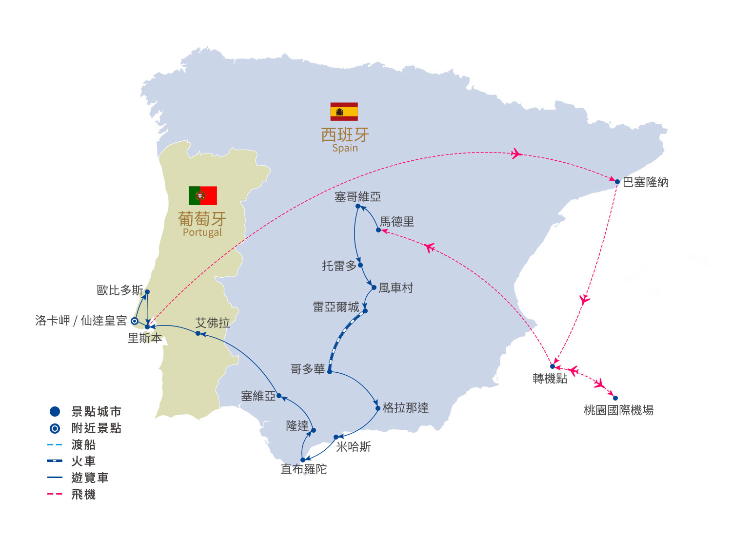 備註:※西班牙與葡萄牙有一小時時差