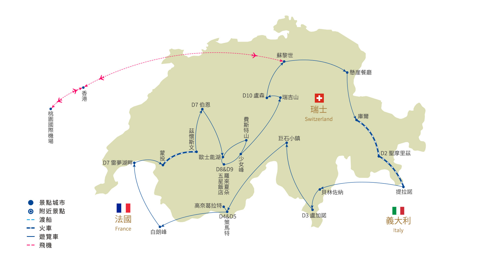 5.特別說明:如遇冰河列車全車預約額滿,將改搭行駛於冰河列車景觀路線之瑞士國鐵列車,敬請了解。