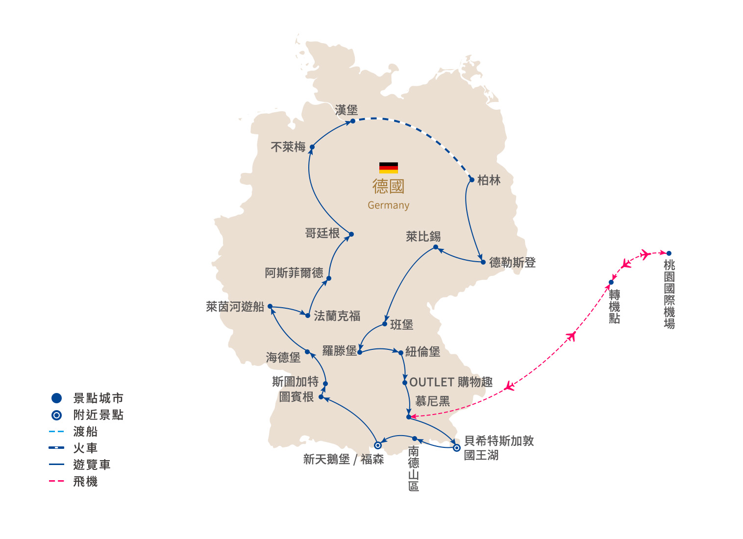 備註:若遇新天鵝堡休館,則改參觀郝恩斯瓦格城堡,若遇兩城堡都休館時則以退費每人10歐元,敬請見諒。
