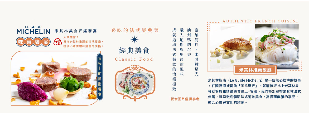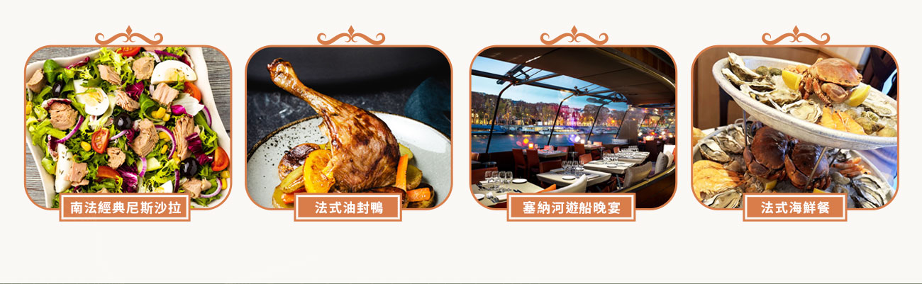塞納河遊船晚宴|沿塞納河畔欣賞巴黎鐵塔、羅浮宮、奧賽博物館等知名景點盡收眼底。河畔風光伴隨精緻法式餐點,享受難忘浪漫饗宴。