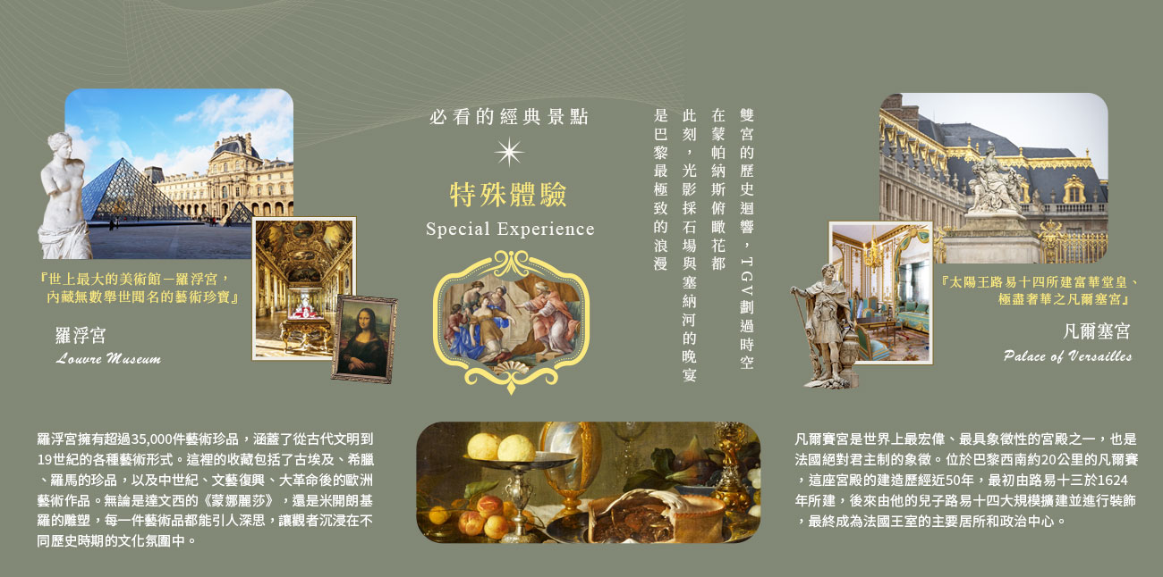 門票安排|羅浮宮。(凡逢星期一凡爾賽宮休館,星期二羅浮宮休館,或遇特別假日休館時,將更改參觀日期或前往其他博物館參觀,敬請見諒!)。