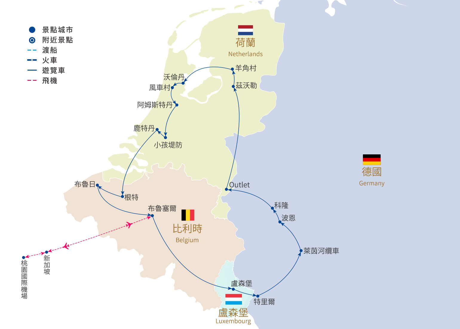 參考行車距離|鹿特丹-165km(2hr)-根特-51km(40min)-布魯日-102km(1.5hr)-布魯塞爾