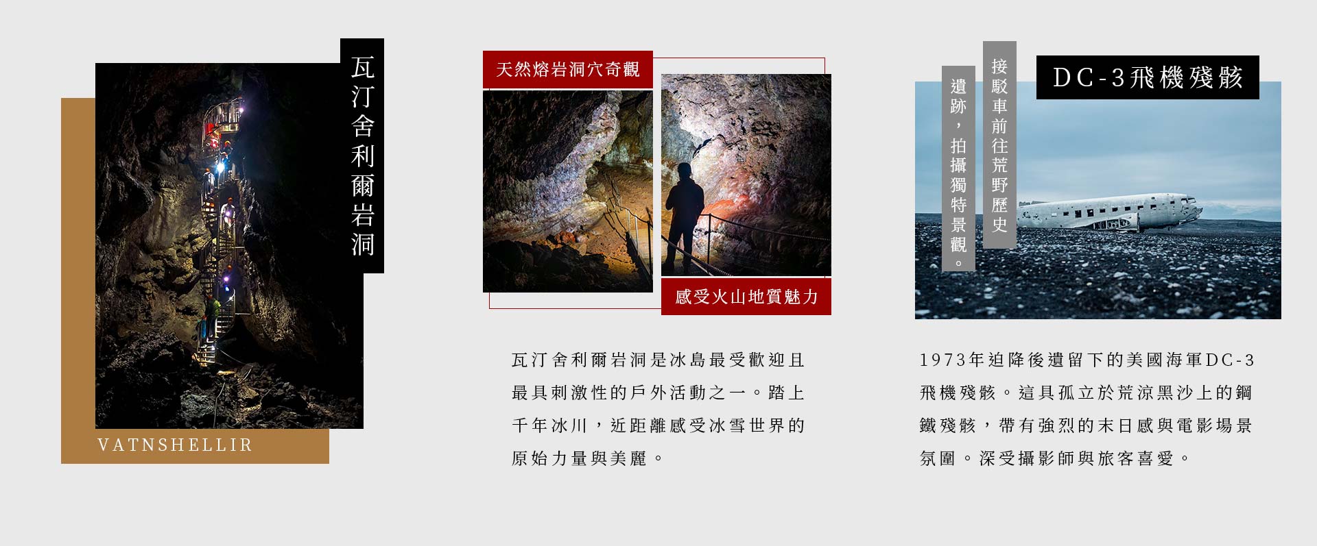 住宿:Fosshotel Nupar 或 Fosshotel Glacier Lagoon 或 Hótel Jökulsarlon 或 Hotel Laki 或 Hotel Skaftafell或同級