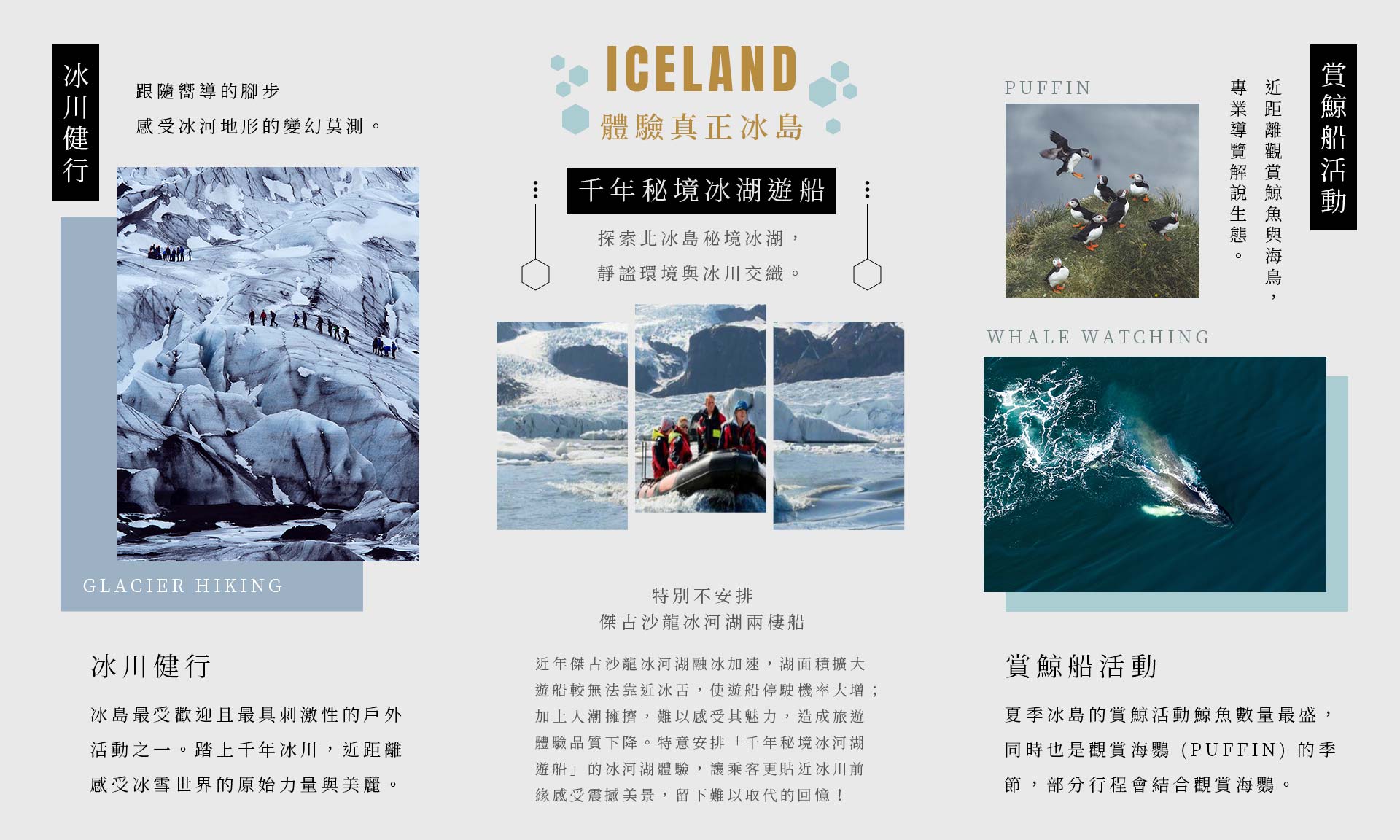 門票安排|千年秘境冰湖遊船、冰川健行(如不參加請於出發前兩周告知或因天候因素無法前往,每位退費30歐)